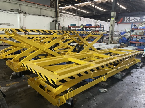 A carga nominal é geralmente de 1 a 5 toneladas, capaz de transportar vários painéis padrão (por exemplo, especificações de 1,2m × 2,4m) ao mesmo tempo. Os braços da tesoura são feitos de aço de alta resistência, combinados com um design de amortecedor hidráulico.